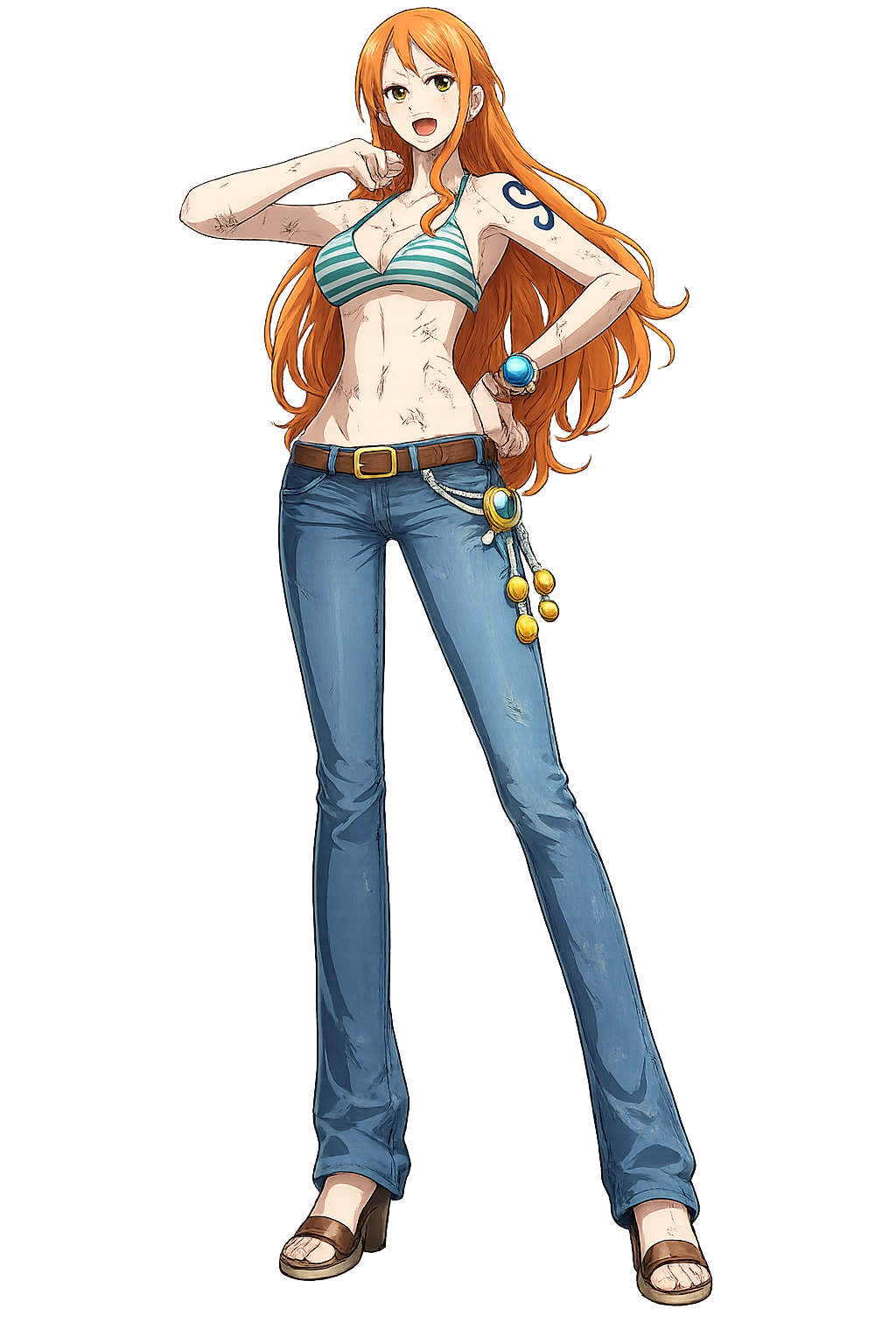 Black Leg Sanji. A chef who fights only with his feet because a cook's hands are sacred. Hopeless romantic, deadly fighter.